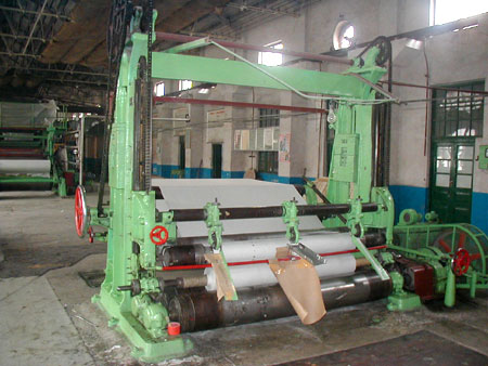 高速复卷机,用于将纸机上初步卷成的原纸卷进行纵切,复卷成符合宽度和紧度要求的成品(pǐn)纸卷。